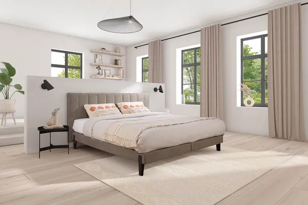 Das Polsterbettsystem bietet zahlreiche Anpassungsoptionen wie 5 Kopfteilvarianten, 5 Matratzenoptionen und 4 Lattenrahmen. Zubehör und Dekoplaids sind gegen Aufpreis erhältlich.